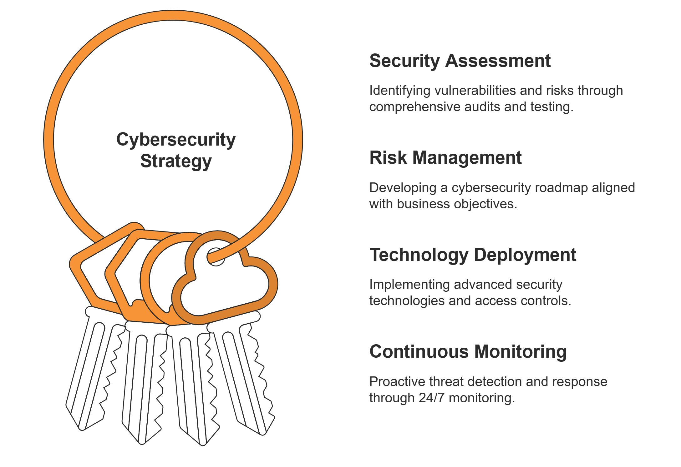 Our Approach to Cybersecurity Services is adopting a systematic approach is crucial. This includes robust network security and monitoring, cutting-edge endpoint protection services, and advanced threat detection strategies. Here’s how we safeguard your business with precision and reliability: